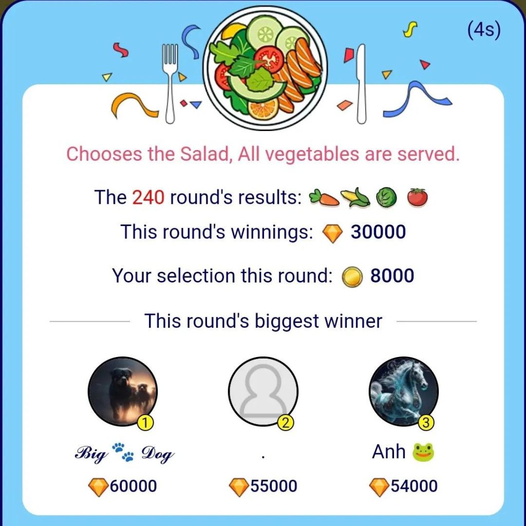 When I first started, I bet 200,000 VND on beef, chicken thigh, and corn – but the result was tomato. I lost everything. That’s when I realized I had to learn the Bigo Live Salad game rules.